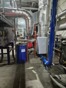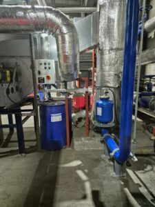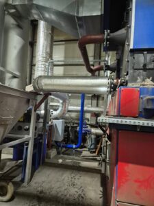 Realizacja obejmował dostawę, montaż oraz uruchomienie instalacji czyszczenia rur wymiennika płomieniówkowego SWD-2500. System został zabudowany z wykorzystaniem króćców umiejscowionych na drzwiczkach wymiennika, co umożliwiło sprawną integrację z istniejącą infrastrukturą kotłową bez konieczności ingerencji w konstrukcję urządzenia.